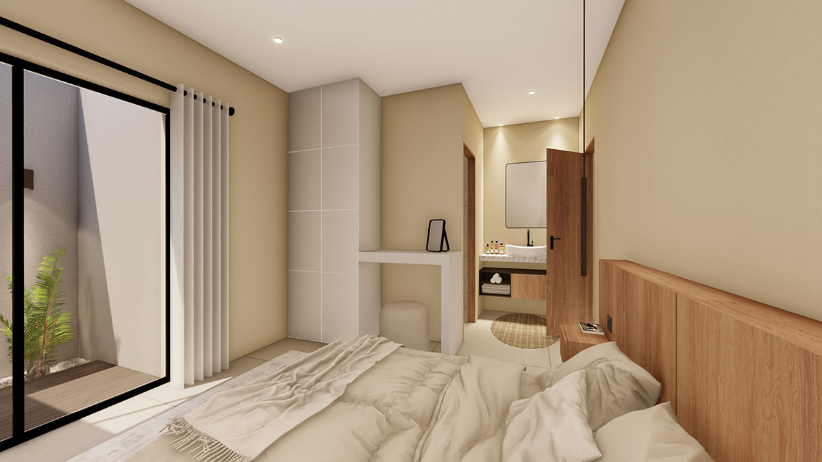 - Three spacious bedrooms, each with private en‑suite bathroom and walk‑in closet.